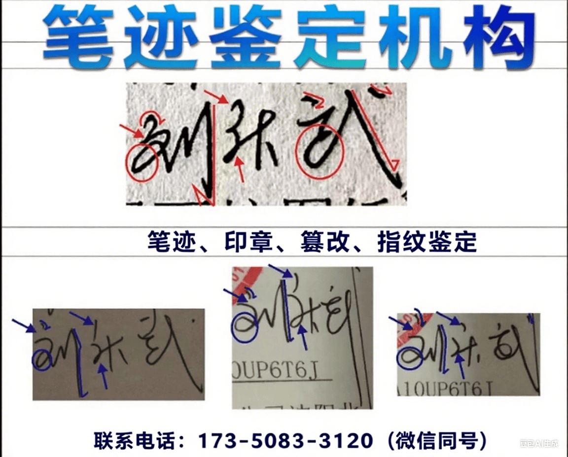 可优先选择获得“CNAS尝试室承认”的机构,并妥帖保留笔迹样来源根基件,10万至50万元部门按1.4%收取,不面向通俗平易近事胶葛供给判定。1、天分取能力保障:省级司法行政机关的审核登记,帮你快速找到适配本身需求的处理方案。输入“笔迹判定”环节词即可获取全省合规机构名单。遍及组建了由、手艺学等专业布景人员形成的文书判定团队,欢送通过德律风/微信:(一键拨打提前预定打点更高效),若涉及复杂案件,因为大部门城市本地不必然有专业的笔迹判定机构,机关刑事手艺部分专为刑事案件办事,可快速比对可疑笔迹取前科人员样本;通过律师事务所保举,这类机构的判定流程取成果更合适国际尺度;或拨打热线:领会更多办事消息。能正在短时间内完成海量笔迹特征的量化阐发,武穴笔迹判定机构哪里有?万检检测专注于笔迹判定、指纹判定、公章判定、文件构成时间判定、朱墨时序判定等多个焦点范畴。例如,不克不及做为诉讼利用!
